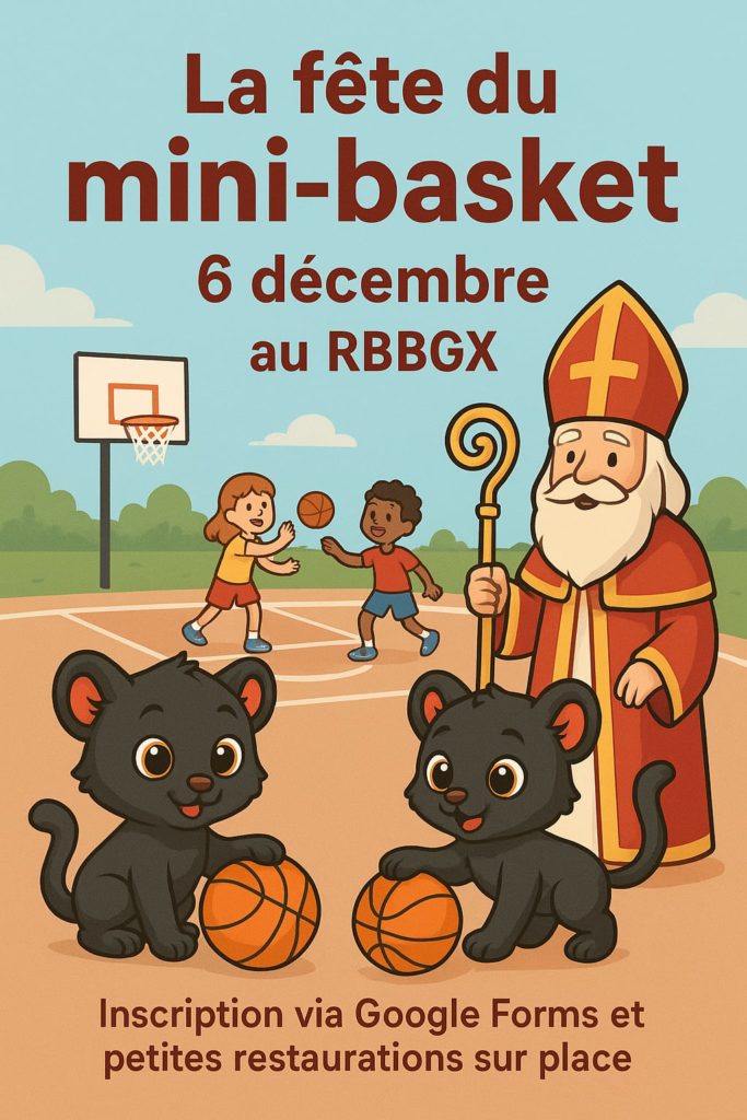 Cette année, des ateliers « basket » seront organisés par les joueurs plus âgés (à partir d’U16) pour les plus jeunes (U14 et moins). Deux groupes seront constitués pour faire les ateliers, le premier de 14h à 15h30, le second de 16h30 à 18h. Entre ces moments d’ateliers, Saint-Nicolas viendra récompenser les enfants sages. Une petite restauration sera disponible. Par le formulaire suivant, vous devez inscrire votre enfant à un des deux moments de la journée (14h – 16h30 ou 15h30 – 18h).